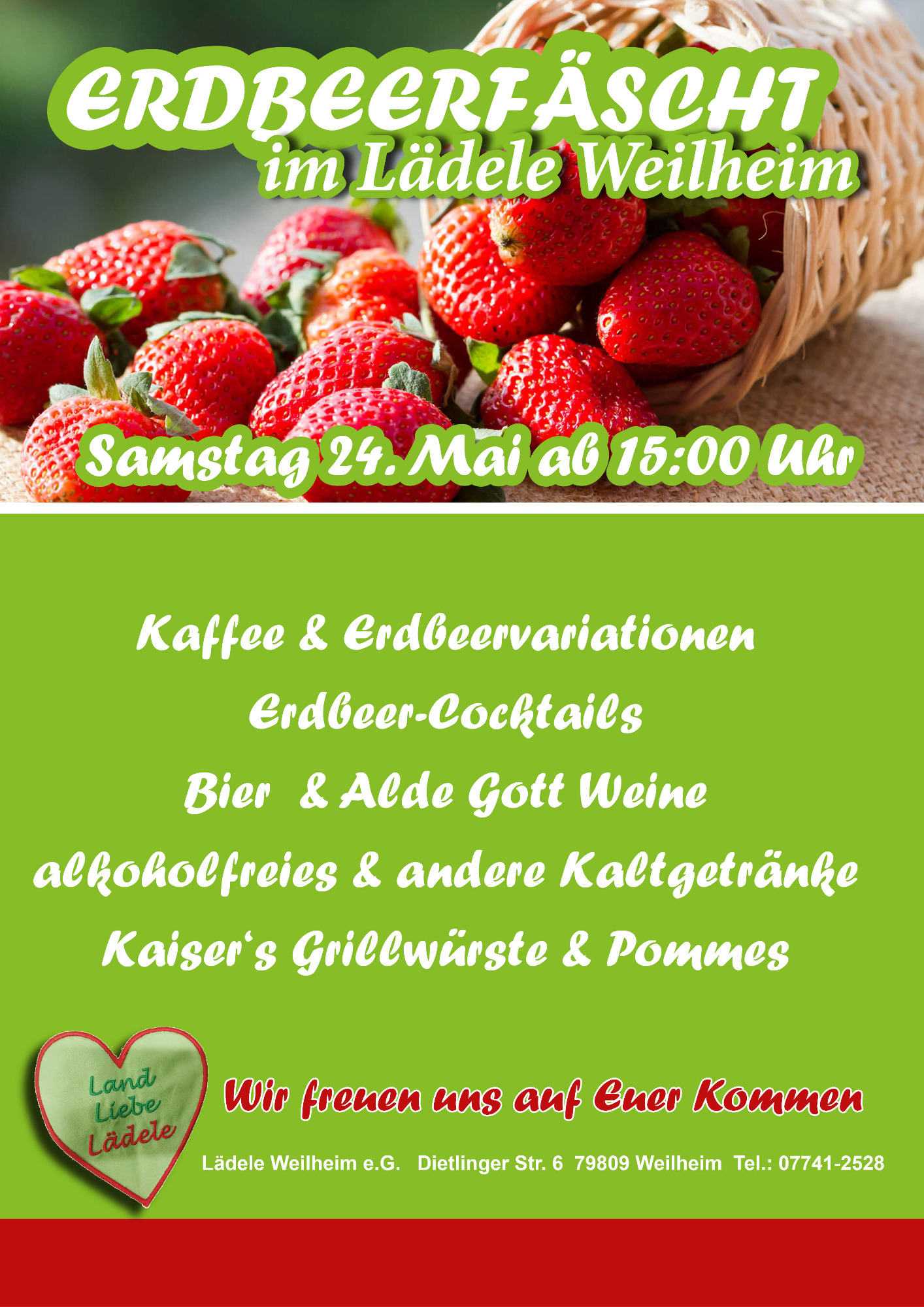 Im Juni 2025 hatten wir wieder unser jährliches Erdbeerfäscht. Mit leckeren Erdbeerkuchenvariationen, Erdbeer-cocktails mit Alde Gott Weinen und Sekten und was natürlich auch nicht fehlen durfte: Bratwürste, Steaks und Pommes.
