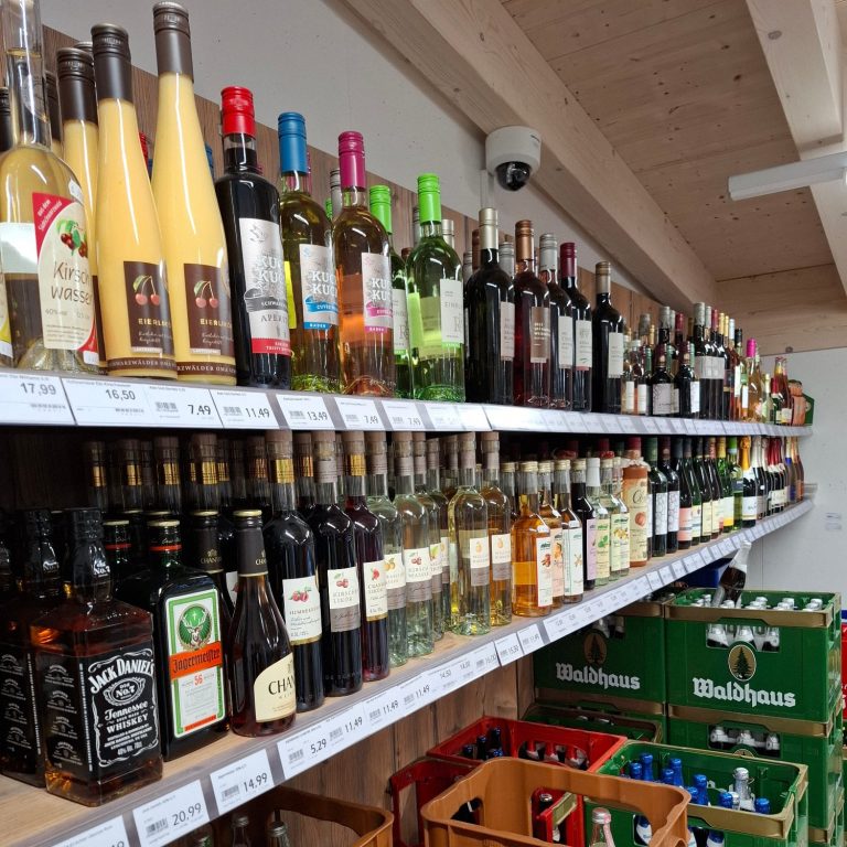 Ein großes Sortiment an Getränken, von Fruchtsäften, Erfrischungsgetränken, Bier, Weine und Edelbrände erwartet Sie.